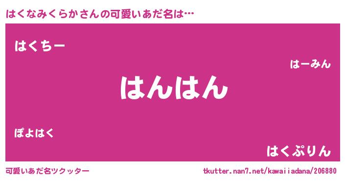 | 恥ずかしいあだ名 | 『プリティーはくなみくらか』『はくちん』 |