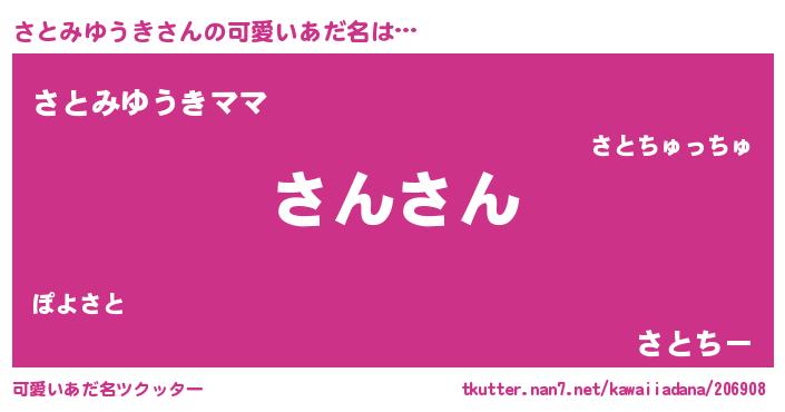 | 恥ずかしいあだ名 | 『プリティーさとみゆうき』『さとちん』 |