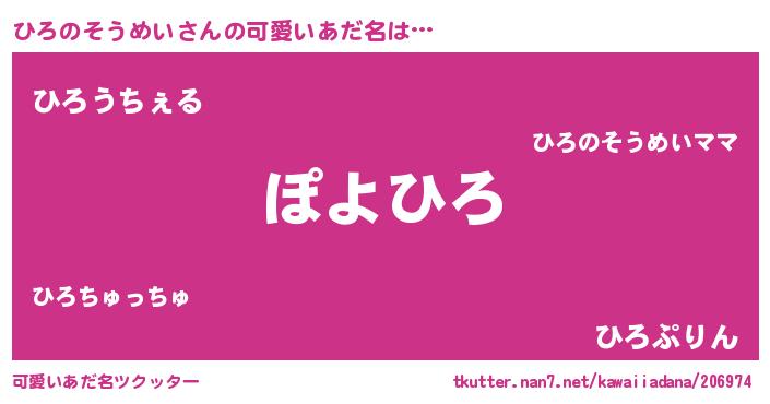 | ヘコむあだ名 | 『ひろのそうめい(遠い目)』『ひろっふぃ~』 |