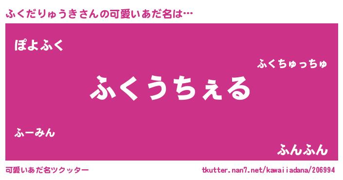 | 男性向けラノベタイトル風あだ名 | 『Re:ふくだりゅうきから始める異世界生活』 |