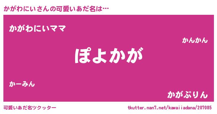 | ヘコむあだ名 | 『かがわにい(笑)』『かがふぇ~』 |