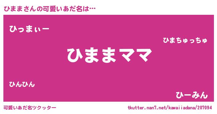 | ヒーロー風カッコイイあだ名 | 『ネオヒママ』『銀牙騎士ヒマ』 |