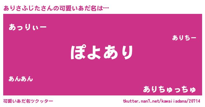 | ポケモン風あだ名 | 『アーリイ』『ヒアリサフジタ』 |