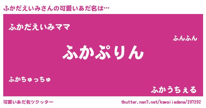 ヘコむあだ名 | 『ふかだえいみ(爆)』『ふかにゅー』 |