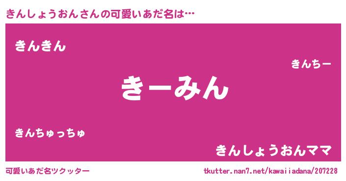 | ヘコむあだ名 | 『きんふぇ~』『きんしょうおん(遠い目)』 |