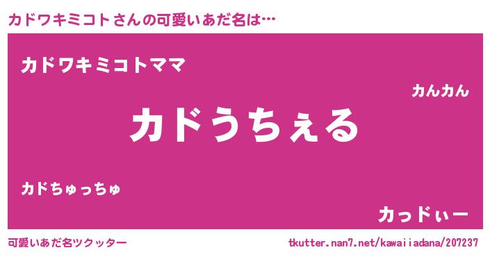 | 意味不明あだ名 | 『自称カドワキミコト』 |