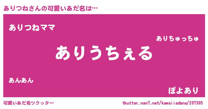 ヘコむあだ名 | 『ありつね(苦笑)』『ありにー』 |