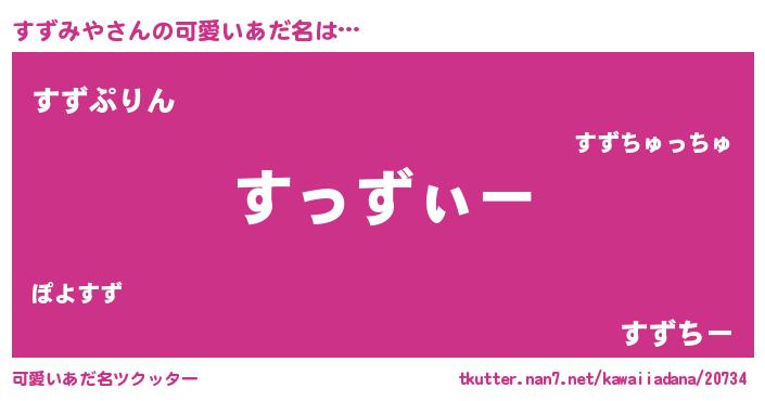 | 女子向けラノベタイトル風あだ名 | 『すずみやの卵を拾いまして』 |