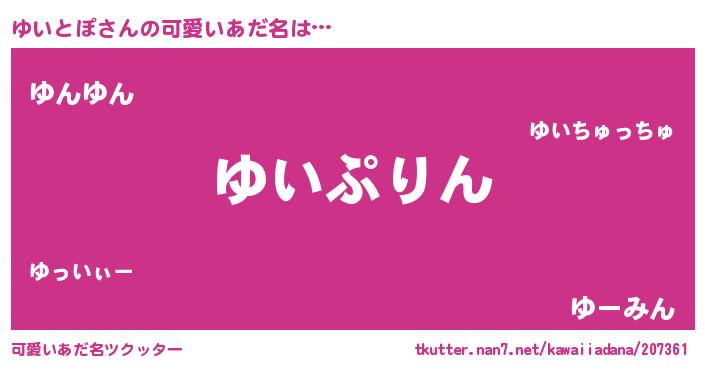 | 恥ずかしいあだ名 | 『プリティーゆいとぽ』『ユイリンリン』 |