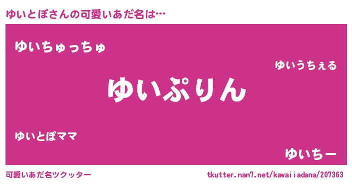| 男性向けラノベタイトル風あだ名 | 『ゆいとぽ~年齢イコール彼女いない歴の魔法使い~』 |