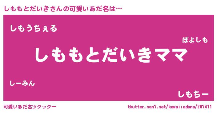 | ヒーロー風カッコイイあだ名 | 『ネオシモモトダイキ』『仮面シモダー』 |