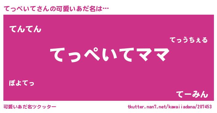| 欧米人風あだ名 | 『アンジェラ・てっぺいて』 |
