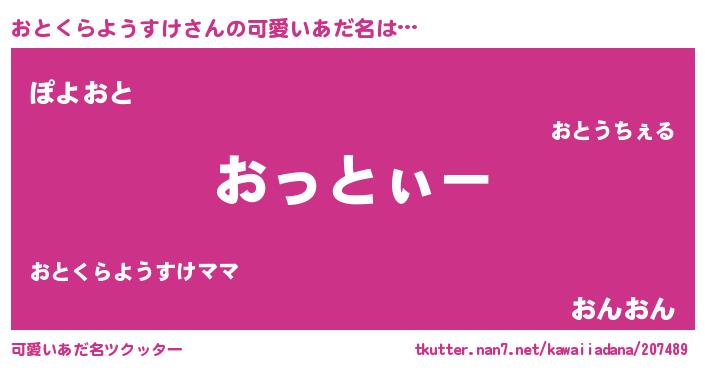 | 男性向けラノベタイトル風あだ名 | 『おとくらようすけの嫁は女の子じゃないと思った?』 |