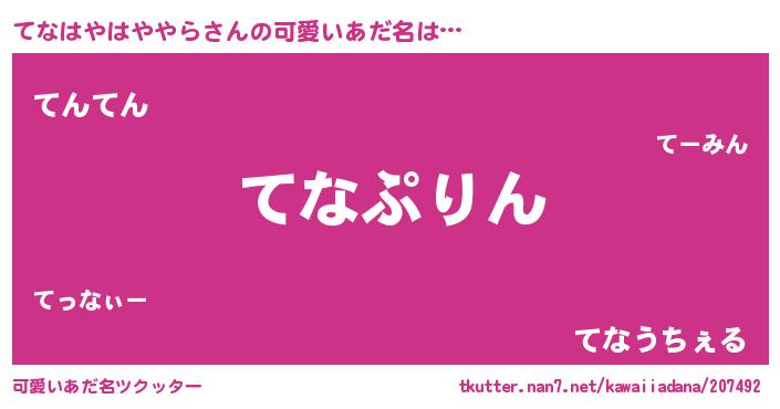 | ヘコむあだ名 | 『てなふぇ~』『てなを』『なまこ酢』 |