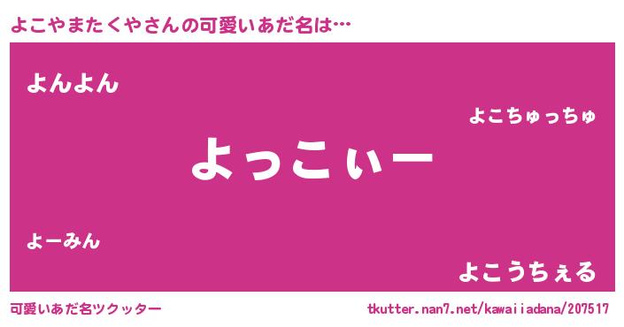 | ポケモン風あだ名 | 『ヒヨコヤマタクヤ』『ヨコチュウ』 |