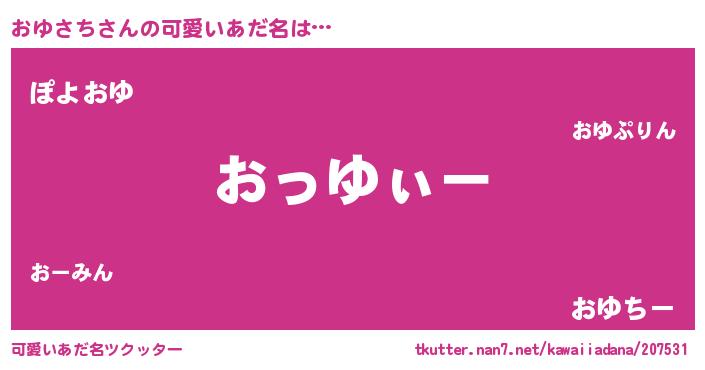 | 意味不明あだ名 | 『とにかく怪しいおゆさち』 |