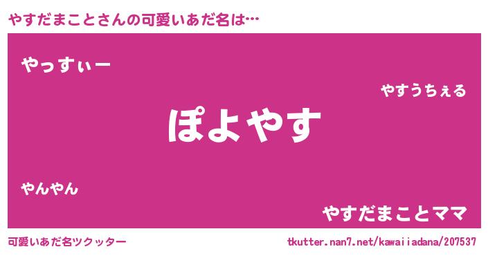 | ヘコむあだ名 | 『やすぷりん』『やすだまこと(爆)』 |