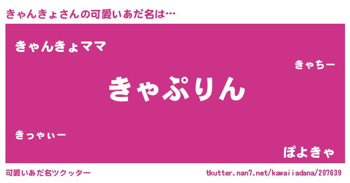 | ヘコむあだ名 | 『きゃんきょ(爆)』『牛乳』『きゃお』 |