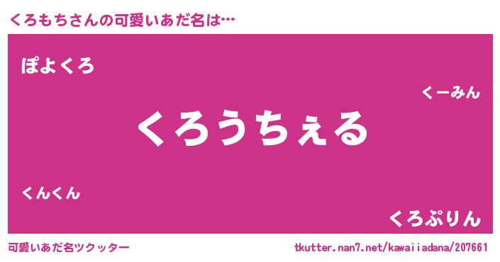 | 恥ずかしいあだ名 | 『クロモチデラックス』『クロリンリン』 |