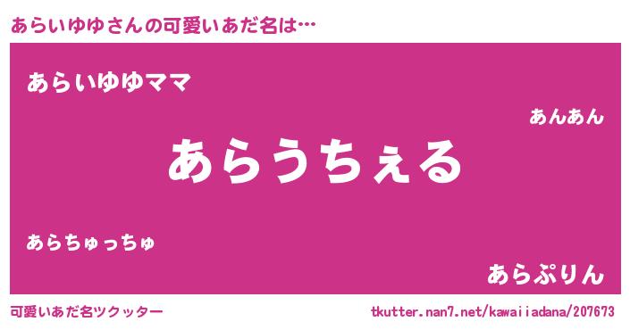 | ヘコむあだ名 | 『あらいゆゆ(苦笑)』『あらっふぃ~』 |