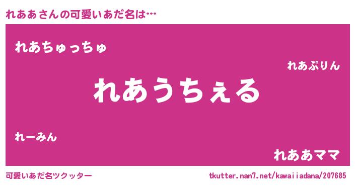 | ヘコむあだ名 | 『れああ(小並感)』『れあにー』 |