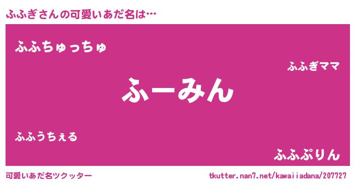 | ヘコむあだ名 | 『ふふぎ(遠い目)』『なまこ酢』 |