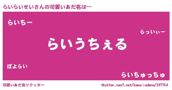 | 恥ずかしいあだ名 | 『ライライセイデラックス』『らいっちょ』 |
