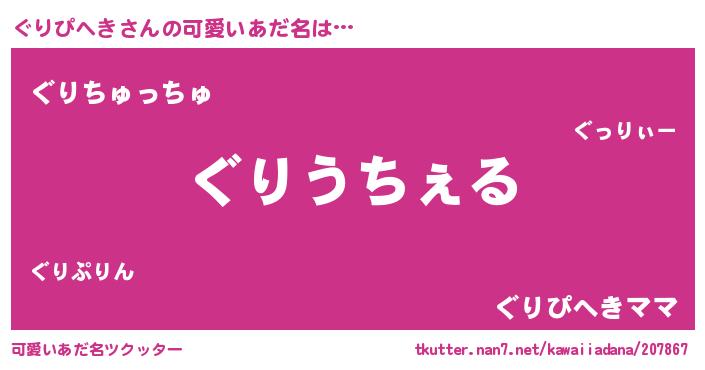 | ヘコむあだ名 | 『ぐりぴへき(笑)』『ぐり太郎』 |