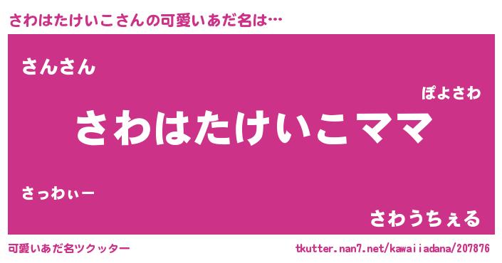 | 意味不明あだ名 | 『永久保存さわはたけいこ』 |
