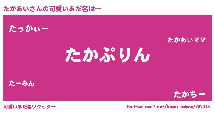 | ポケモン風あだ名 | 『タカキング』『ヒタカアイ』 |