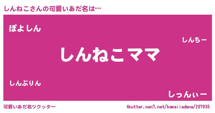 | 女子向けラノベタイトル風あだ名 | 『しんねこの契約王妃』 |