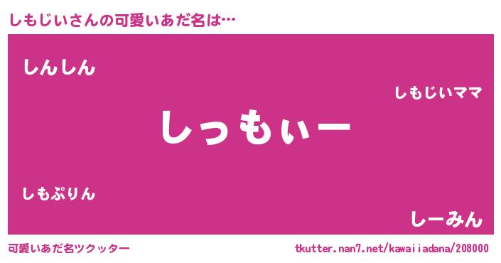 | 恥ずかしいあだ名 | 『シモリンリン』『プリティーしもじい』 |