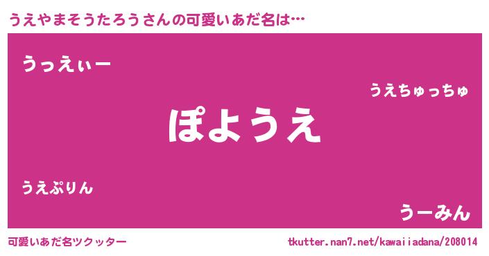 | ヘコむあだ名 | 『うえお』『うえやまそうたろう(笑)』 |