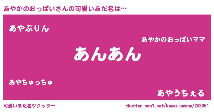 | ヘコむあだ名 | 『あやもー』『あやかのおっぱい(苦笑)』 |