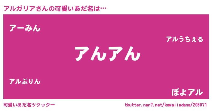 | 意味不明あだ名 | 『ペロリンアルガリア』『自称アルガリア』 |