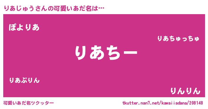 | ヘコむあだ名 | 『なまこ酢』『りあもー』『りあお』 |