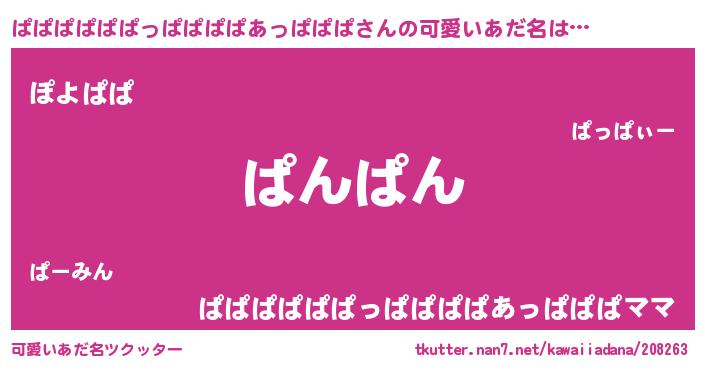 | 女子向けラノベタイトル風あだ名 | 『(仮)ぱぱぱぱぱぱっぱぱぱぱあっぱぱぱのやんごとなき事情』 |