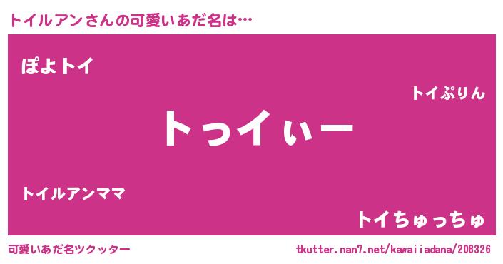 | ヘコむあだ名 | 『トイぷりん』『トイルアン(笑)』 |