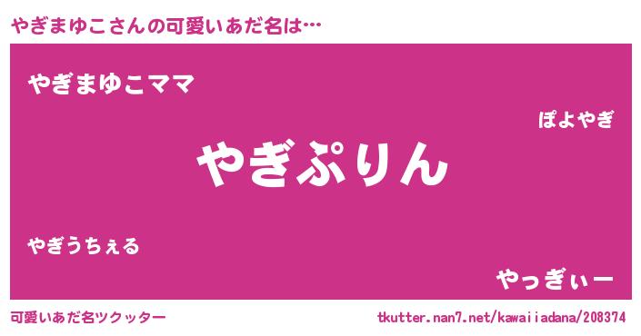 | 男性向けラノベタイトル風あだ名 | 『やぎまゆこ~年齢イコール彼女いない歴の魔法使い~』 |
