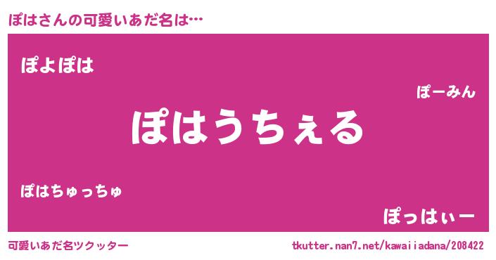 | ヘコむあだ名 | 『ぽはお』『酢こんぶ』『ぽは(笑)』 |