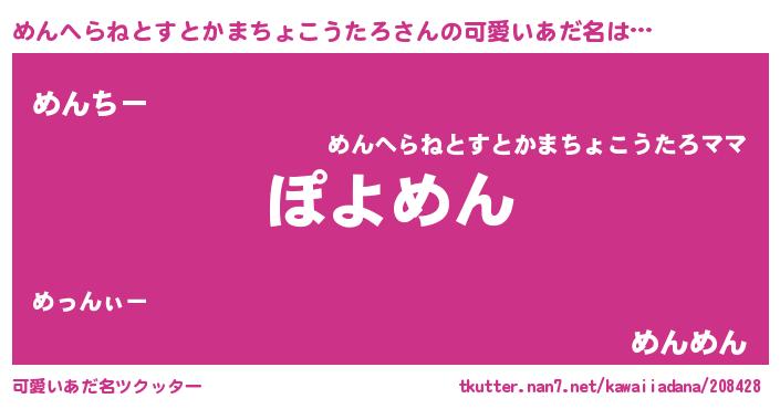 | ポケモン風あだ名 | 『メーンイ』『メンヘダネ』 |