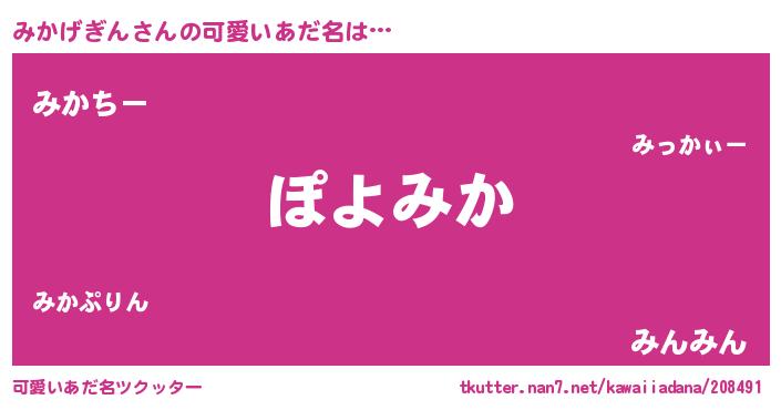 | 恥ずかしいあだ名 | 『みかっちょ』『プリティーみかげぎん』 |