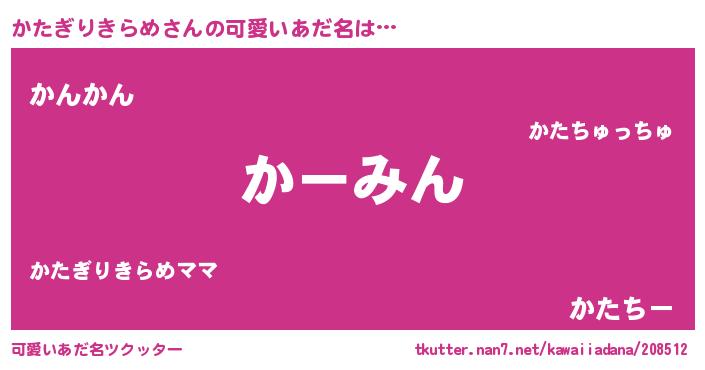 | 男性向けラノベタイトル風あだ名 | 『うちのかたぎりきらめが世界を掌握している!』 |