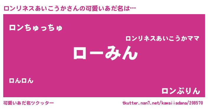 | 男性向けラノベタイトル風あだ名 | 『うちのロンリネスあいこうかが世界を掌握している!』 |