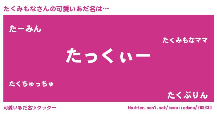 | ヘコむあだ名 | 『たくぷりん』『たくみもな(苦笑)』 |