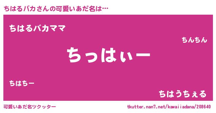 | 男性向けラノベタイトル風あだ名 | 『ちはるバカの嫁は女の子じゃないと思った?』 |