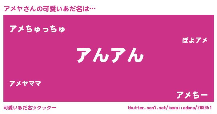 | 意味不明あだ名 | 『ペロリンアメヤ』『アメヤフォーエバー』 |