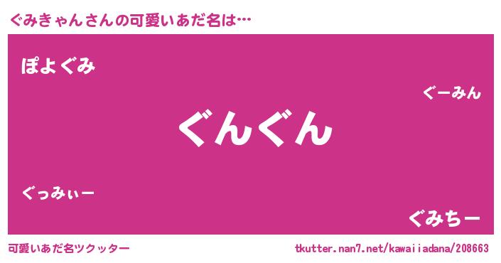 | ヘコむあだ名 | 『ぐみにー』『酢こんぶ』『ぐみお』 |
