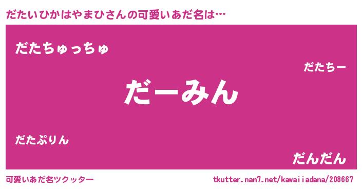 | 男性向けラノベタイトル風あだ名 | 『うちのだたいひかはやまひが世界を掌握している!』 |