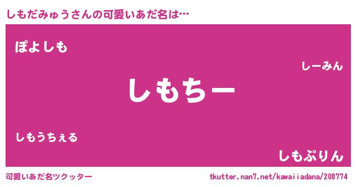 | 意味不明あだ名 | 『しもだみゅうフォーエバー』 |